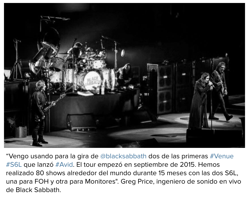 “Vengo usando dos de las primeras VENUE | S6L que lanzó Avid para la gira de Black Sabbath . El tour comenzó en septiembre de 2015. Hemos realizado 80 shows alrededor del mundo durante 15 meses con las dos S6L, una para FOH y otra para Monitores. La gira nos ha llevado desde los EE.UU a Canadá. Luego a Europa. Desde México a Chile y ahora, aquí en Argentina; en Córdoba y Buenos Aires.