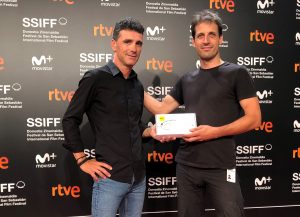 En la imagen inferior vemos a nuestro comercial Jose Luís Martínez (izquierda), haciendo entrega del d:fine™ 6066 Subminiature CORE a Amal Ariztimuño (derecha), gerente de Eragin Stac, empresa a cargo de sonido de las galas.