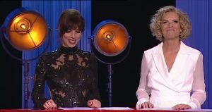 Durante la Gala de Cierre, el micrófono en esta vez utilizado por la presentadora Edurne Ormazabal (derecha), quedaba completamente inapreciable a simple vista.