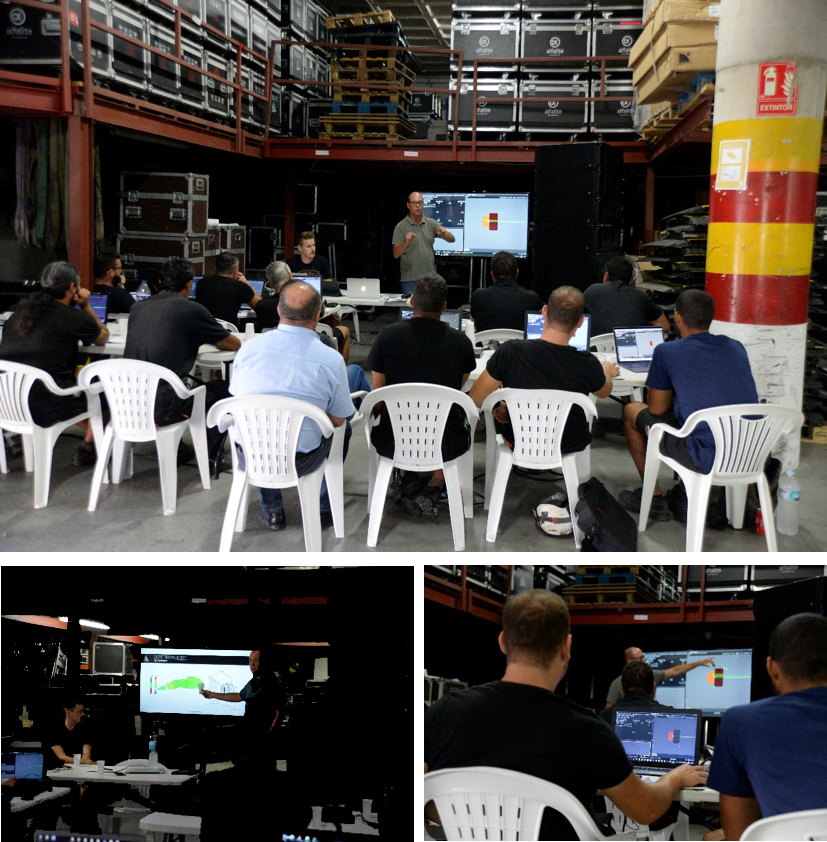 La formación muy exhaustiva, se ha basado en la configuración, set up y utilización del sistema de predicción de Adamson Blueprint, imprescindible para garantizar un soporte adecuado a todos sus clientes. Y se ha llevado a cabo en las oficinas de Sonopluss, de la mano de Mario Ahlberg (formador de Adamson en Europa,) y Nacho Alberdi (CEO de SeeSound).