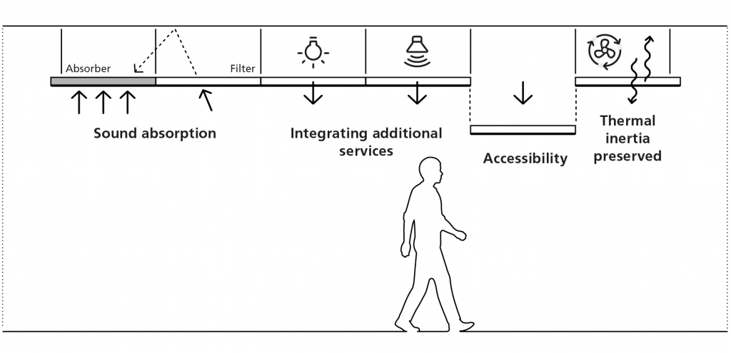 La nueva gama Strato de Texaa ofrece una serie de soluciones eficientes para hacer frente a las complejas preguntas que plantea el diseño de techos en las construcciones actuales. ¿Cómo se puede mejorar el confort acústico? ¿Cómo se puede encontrar espacio para colocar libremente los cables y conductos de instalaciones eléctricas, sonido y climatización? ¿Cómo pueden estas instalaciones ponerse en armonía visual y cómo pueden ocultarse esos elementos antiestéticos mientras se mantiene el acceso al plenum?