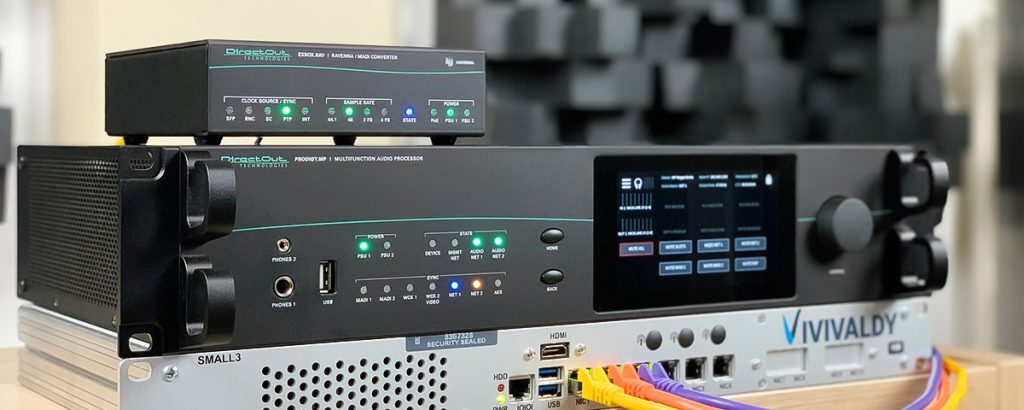 Los paquetes “ViViD” incluyen soluciones VPN de Vivivaldy combinadas con productos DirectOut compatibles con RAVENNA, como PRODIGY.MP y EXBOX.RAV. La implementación RAVENNA de DirectOut permite la transmisión de audio en tiempo real sin comprimir a través de IP con latencia ultrabaja o con tiempos de búfer de hasta 500 ms.