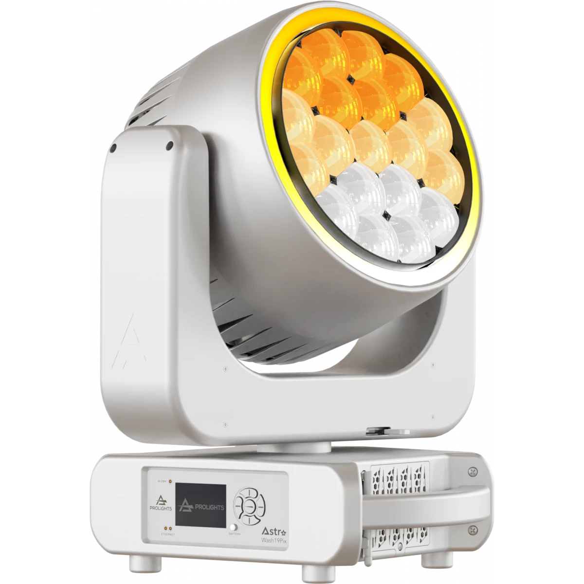 Wash LED con 19 píxeles RGBW controlables individualmente, zoom 4°-54°, anillo exterior de píxeles, múltiples efectos integrados y operación silenciosa. Una herramienta flexible para efectos dinámicos y creativos.