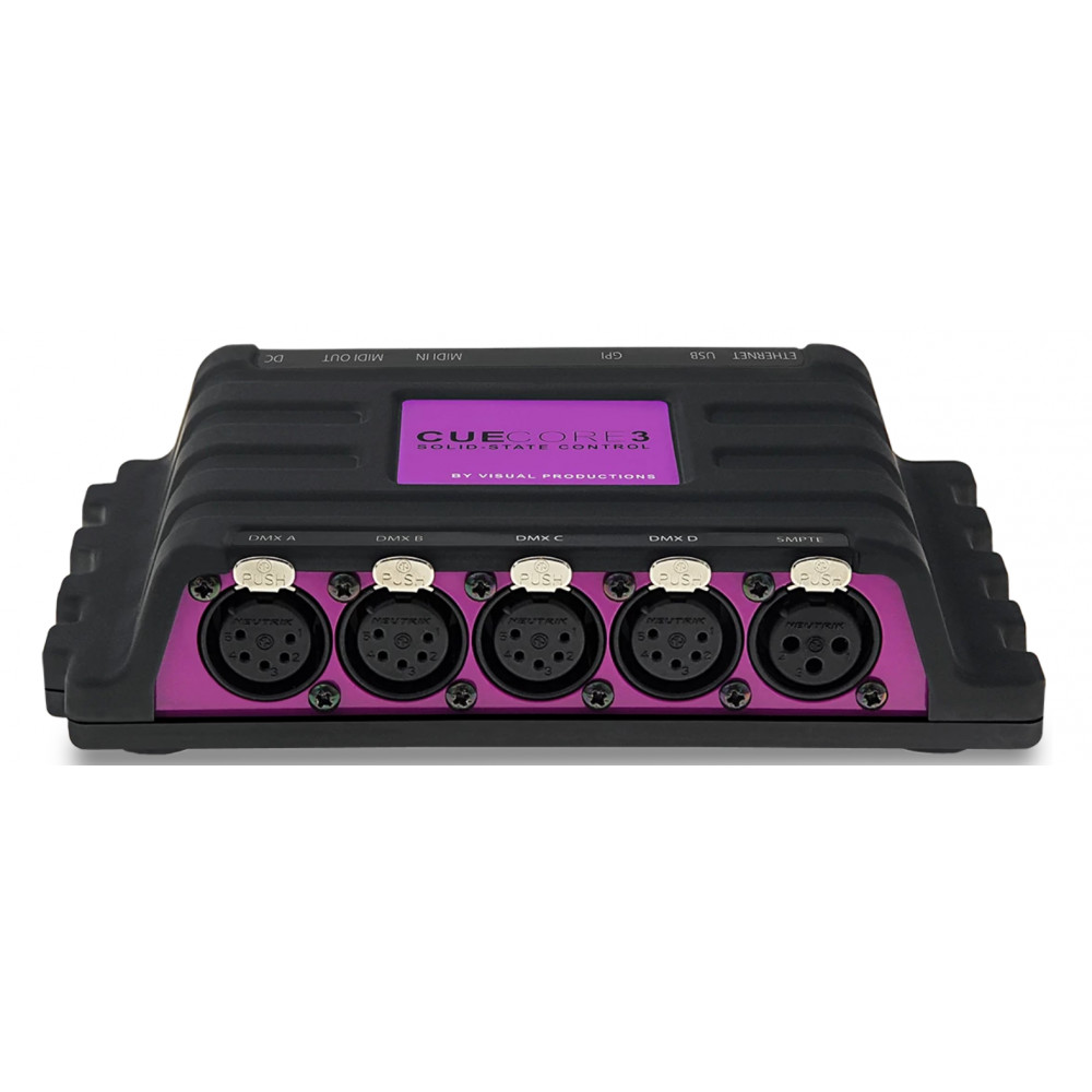 - 1 controlador CueCore3 de Visual Productions, que lanza la programación con máxima fiabilidad.