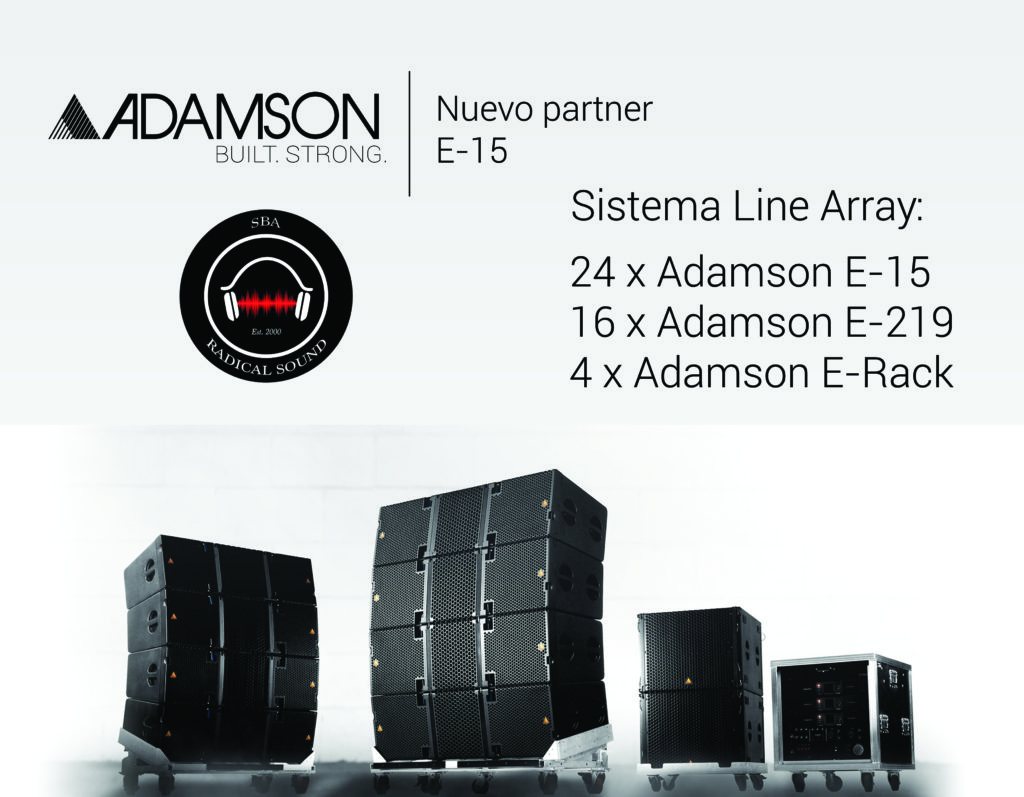 La empresa de Madrid SBA Radical Sound que cuenta con mas de 18 años en el sector del audio y video, añade a su stock de alquiler el sistema E-15 de Adamson.