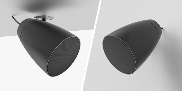 Un soporte de montaje de una pieza hace posible el montaje en pared y techo en cualquier ángulo deseado. Este soporte giratorio permite el mismo diseño e identidad del sistema de audio en toda la instalación para las áreas que no permiten el uso de soluciones colgantes, donde por altura del techo u otras estructuras no es viable.