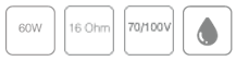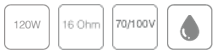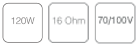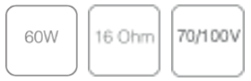 - Interruptor giratorio para selector de potencia para 70/100V y uso de baja impedancia (16 Ω)