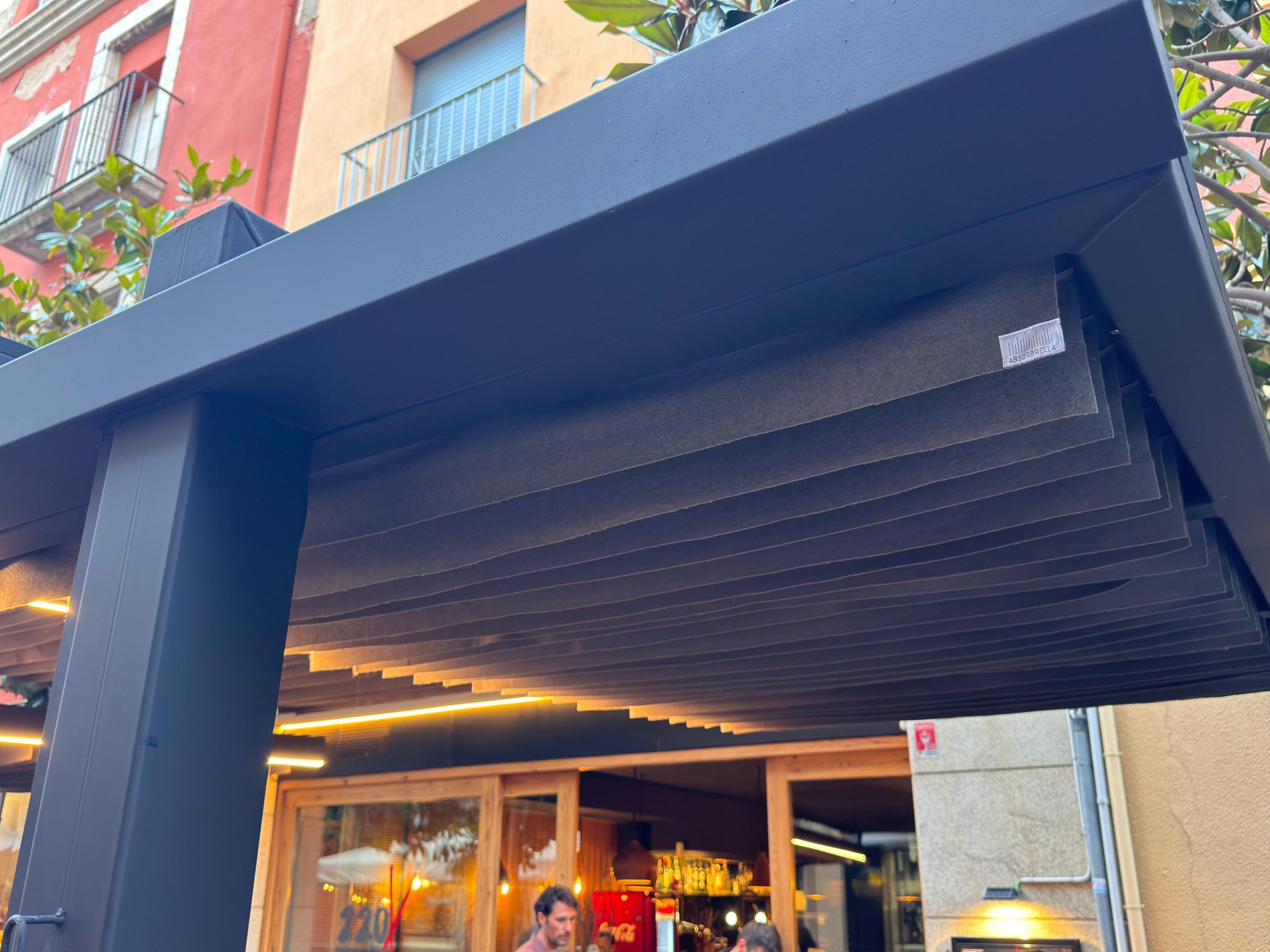 La solución elimina la molestia sonora mediante una integración sencilla y eficaz en elementos de protección solar exterior como parasoles, pérgolas, velas o carpas. El sistema, enteramente desarrollado en España con material europeo, ya se está aplicando en proyectos piloto de terrazas antirruido en ciudades españolas como Valencia, Málaga y A Coruña.