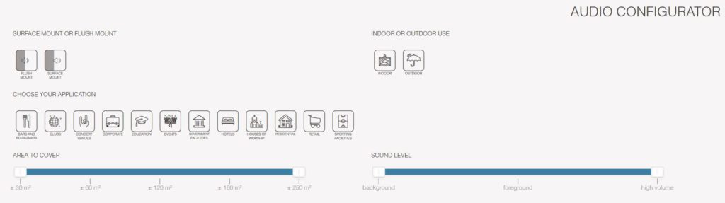 En la web de AUDAC podemos utilizar online su Audio Configurator, http://audac.eu/audio-configurator, para realizar nuestras propias propuestas de audio.