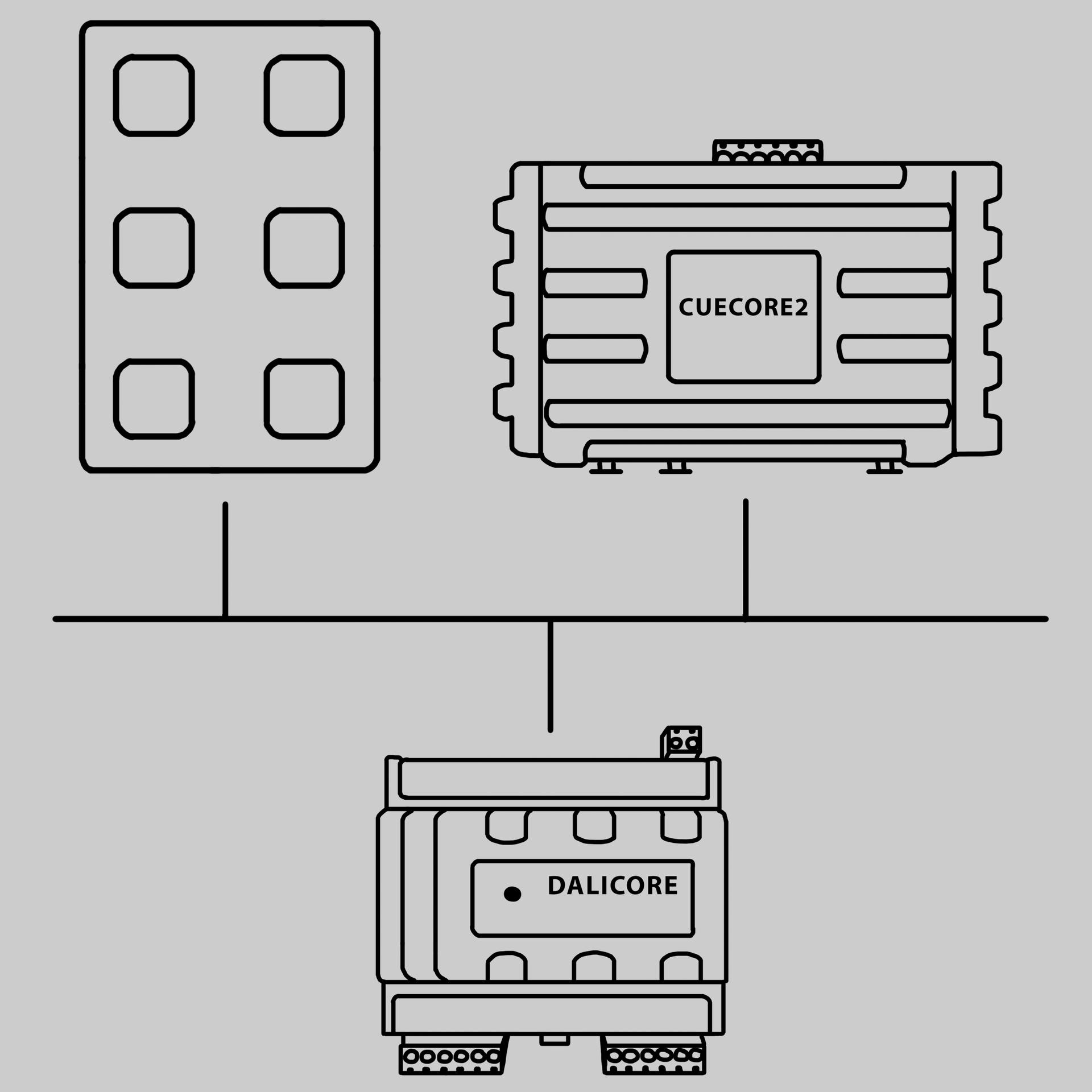 Dirigido a instalaciones híbridas donde conviven los DALI y DMX, el DaliCore también controla dispositivos DMX, incluyendo la comunicación bidireccional RDM.