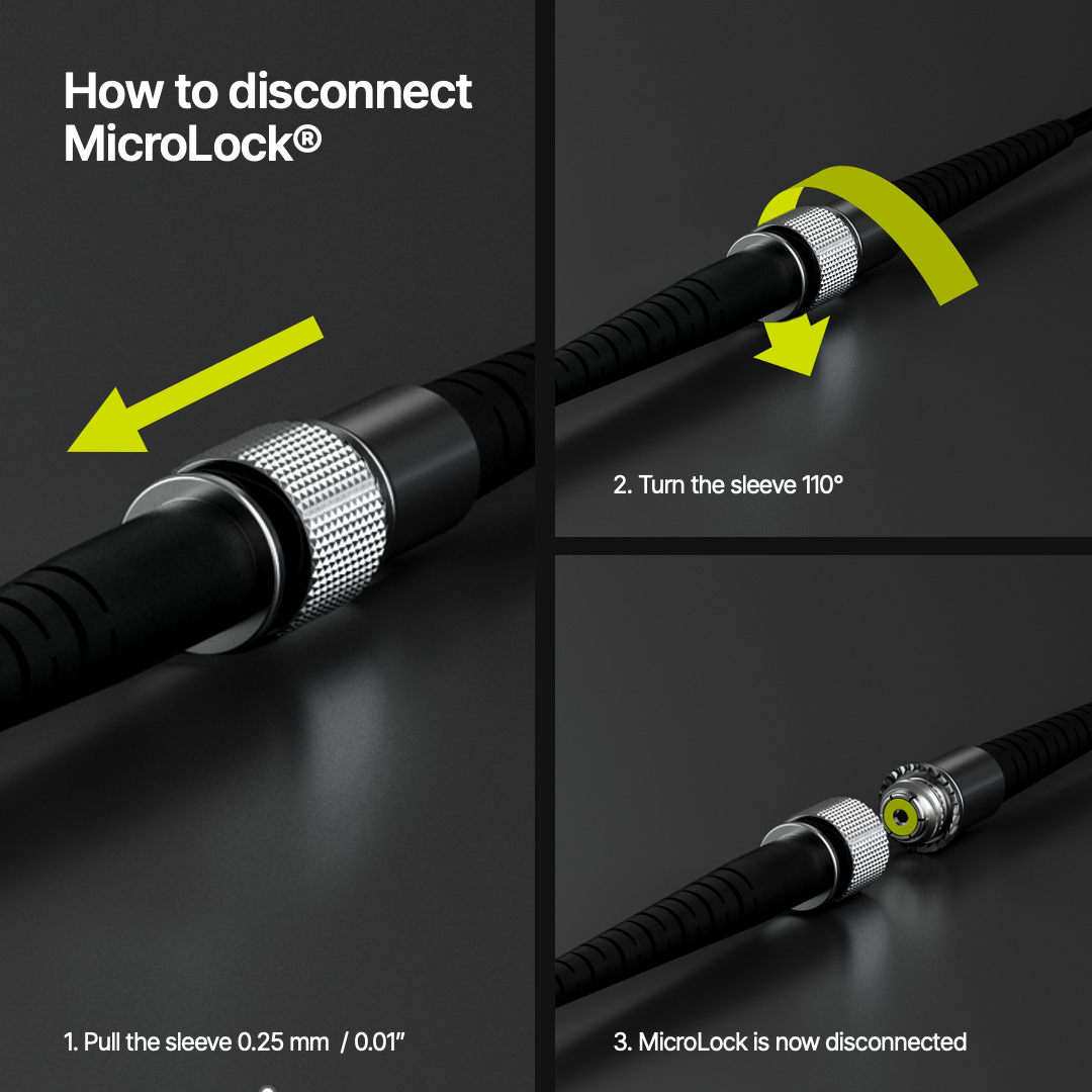 MicroLock® presenta un nuevo mecanismo de bloqueo, que ofrece a los usuarios una conexión rápida, sencilla y segura, además de una capa adicional de protección contra desconexiones accidentales durante su uso.