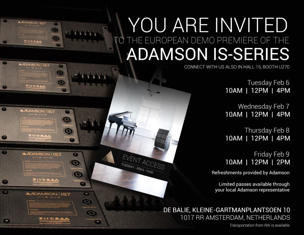 Como primicia Europea, Adamson realizará varias demostraciones de su nuevo IS-Series en Amsterdam conincidiendo con las fechas del ISE y te invita a disfrutarlo. ¿Te lo vas a perder?