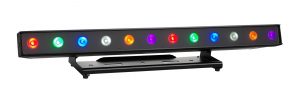 Barra de 12 LEDs RGBW + UV controlables individualmente, con atenuación electrónica, luz estroboscópica y efectos de pulso, con ángulos de haz disponible de 25° y 32°.