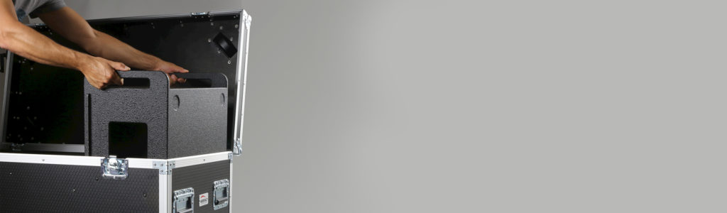 Se pueden combinar juntas múltiples unidades de FCI en un mismo flightcase de transporte, quedando almacenado y organizado igualmente después de sacarlos del flightcase.