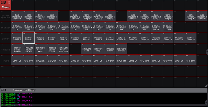 Los controladores de iluminación de la familia de Visual Productions se integran en las consolas Grand Ma de la marca MA Lighting. Vamos a poder encontrar todas las plantillas de los siguientes dispositivos en nuestros menús de Macros: CueCore3, CueCore2 y QuadCore; además de B-Station2, TimeCore, DaliCore y IOCore2.