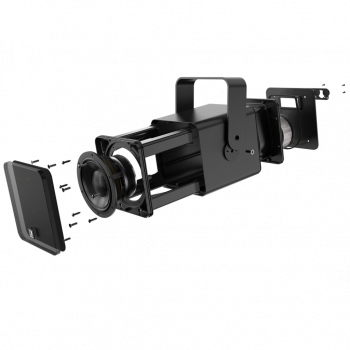 Altavoz coaxial de 2 vías de alto rendimiento de aluminio, 5 1/4” y cúpula blanda de seda tratada de 1”, interiores y exteriores. 60 W RMS/16 Ohms. Dimensiones (ANxALxPR): 198 x 235 x 191 mm. 4,2 Kg. Incluye soporte. Color Negro.