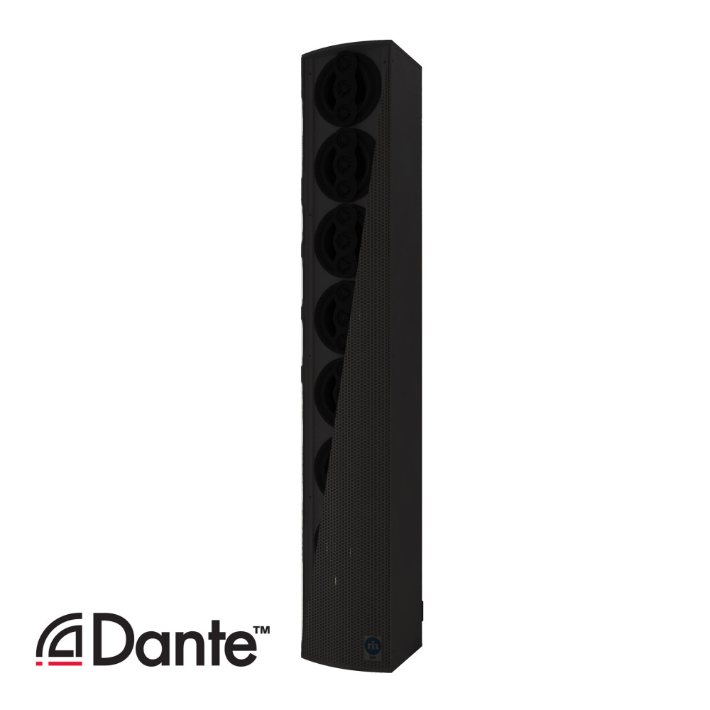 Altavoz tipo columna con DSP interno con control electrónico de directividad mediante algoritmos OmniBeam; 8 woofers de 4 (cada uno monta 3 tweeters de 1), 8 canales de amplificación de 50W RMS y DSP; dispersión horizontal 120°; dispersión vertical regulable de 20° a 30° para cada lóbulo (máx. 4 lóbulos); Haz vertical ajustable electrónicamente +/-30°; Control de directividad a partir de 800 Hz; Respuesta en frecuencia: 135-17 kHz; SPL máx. 96 dB (a 30 metros), entrada doble balanceada analógica y digital AES\EBU y DANTE; 2x RJ- 45 para conexión Ethernet; contactos para monitorear el estado del altavoz; Dimensiones (AlxAnxPr): 957 x 186 x 159 mm; soporte de pared giratorio incluido; Peso: 16,3 kg; Color personalizado, falta añadir 1 x PNTSETUP que es el coste de cambio de color compartido entre todos los altavoces del pedido.