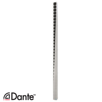 Altavoz para exterior IP55 activo tipo columna. Control electrónico de directividad; 32x 4 y 96x 1 HF, AES\EBU y DANTE; 3781 x 186 x 159 mm; Color blanco.