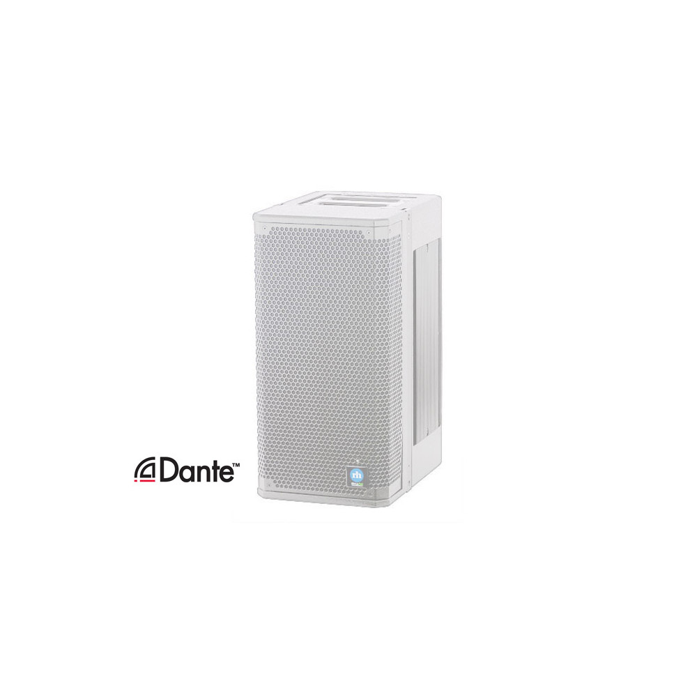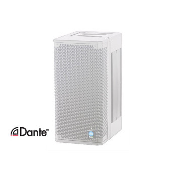 Altavoz para exterior IP55 activo profesional de rango completo de 2 vías con 2 woofers de 8" y 6 drivers Mylar de 1". 8 canales de amplificación de 100W. Control de directividad. DANTE. Color blanco.