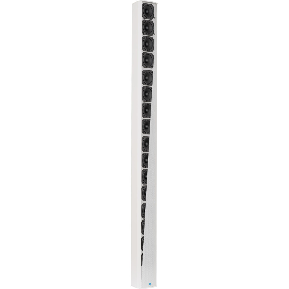 Altavoz tipo columna pasivo UBX Unibeam con control de directividad vertical asimétrico con 16 altavoces de neodimio de rango completo de 3. Preparado para exterior IP64. Cumple normativa EN54-24. Dispersión 120°H x 15°V (+5°-10°) con inclinación vertical del haz de 4°. Sensibilidad 95 dB (1w/1m), Presión máxima 124 dB. Impedancia 4 ohmios (450W programa) o línea de 100 Voltios con potencia seleccionable 25-50-100 Watts. Dimensiones 1445 x 112 x 121 mm. Respuesta en frecuencia 140 Hz-15 Khz (+-3db). Altavoz tratado para resistir la salinidad, el cloro y los rayos UV con clasificación IP64. Recinto acústico y rejilla fabricados en aluminio. Peso 7,4 Kg. Color Blanco.