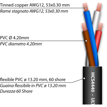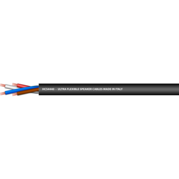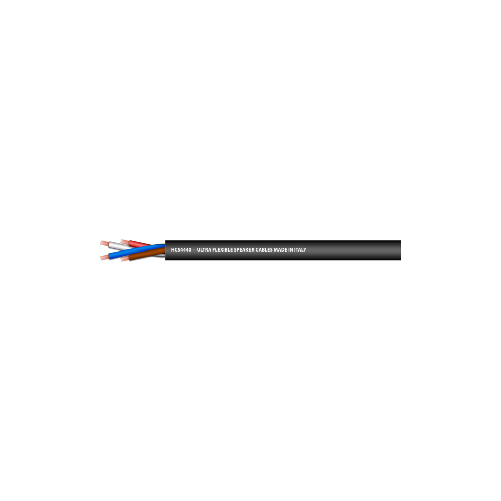 Cable de altavoz de 4x4mm, 13,2mm diámetro exterior. Precio por metro, se vende en rollos (consultar longitudes). Color negro.