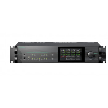 Frame de PRODIGY.MP con DSP con licencia Unlimited. Loudness Meetering, Ember+, OSC y futuras opciones. Formatos MADI, DANTE, RAVENNA y SG. Display 5".