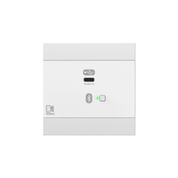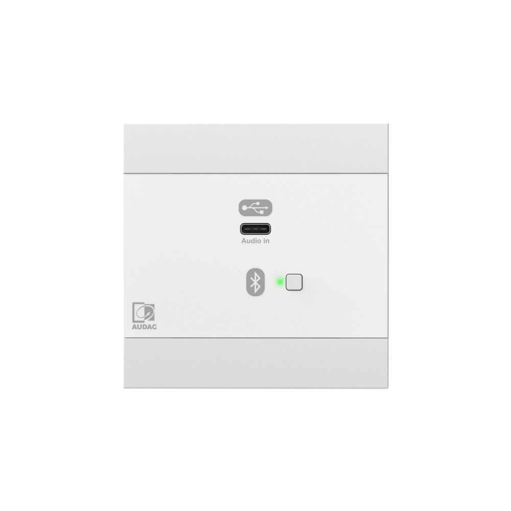 Familia Atellio. Panel de entrada de audio en red Dante™/AES67, que cuenta con un puerto USB tipo y un receptor Bluetooth integrado. Comunicación basada en IP, compatible con red PoE. Varias funciones DSP integradas adicionales, como EQ, control automático de ganancia y otras configuraciones del dispositivo, se pueden configurar a través de AUDAC Touch ™. Compatible con cajas de pared estándar de estilo europeo. Color Blanco.
