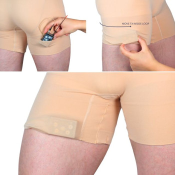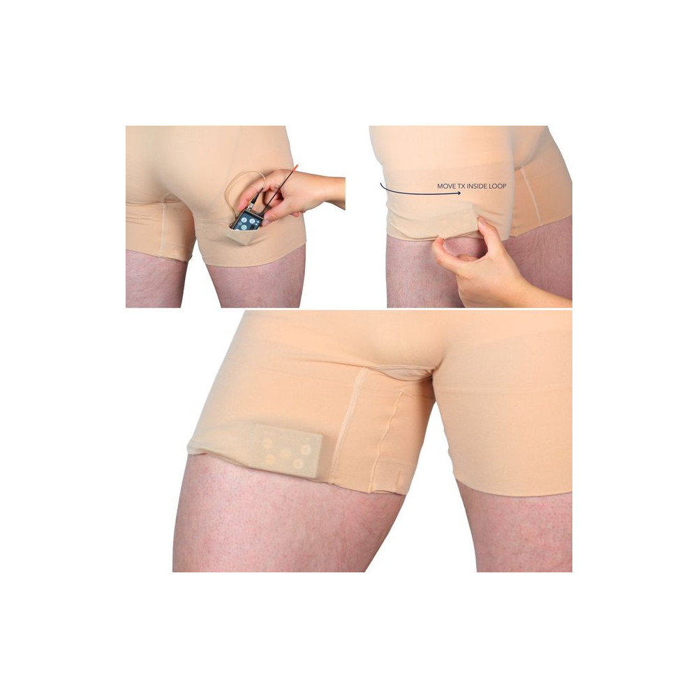 Boxers porta-petaca. Talla S 32-36. Beige. Material muy fino, ligero y que no oprime el cuerpo. Varios compartimentos porta-petaca: Alrededor de toda la cintura o en el interior de los muslos. Diseñado para simplificar la colocación de petacas y micrófonos debajo de atuendos de teatro. Compatible con transmisores pequeños: Wisycom MTP61, Sennheiser SK6112/5212, Lectro SSM, SMV, SMQV, PDR, Shure ADX1M...