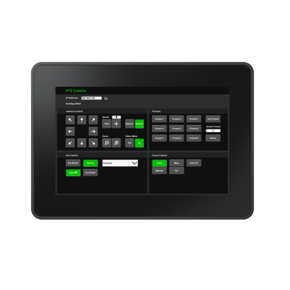 Pantalla táctil de 7" de alta resolución con panel frontal de cristal para control personalizado a través de Symvue. Alimentación PoE.