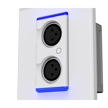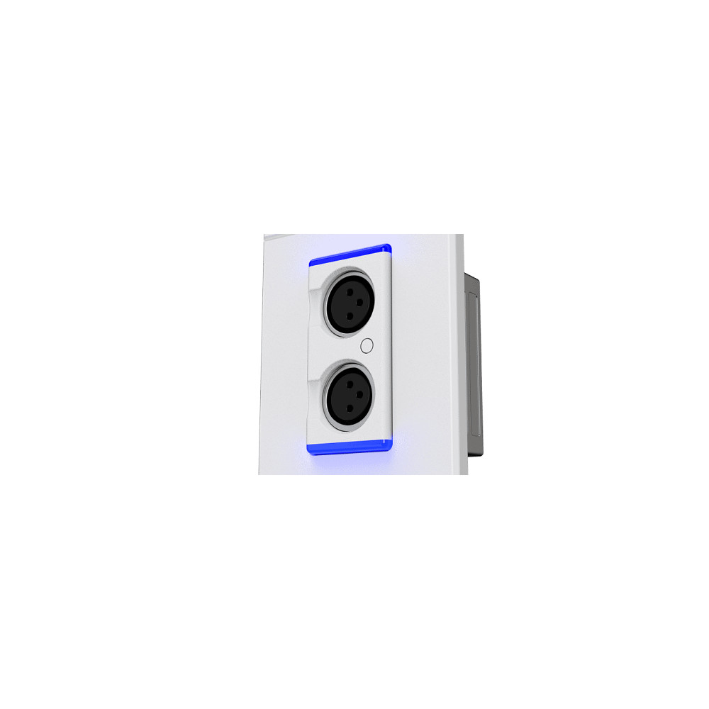 Cajetín DANTE con 2x Entradas Micro XLR. Alimentación por PoE. Formato europeo. Color blanco.