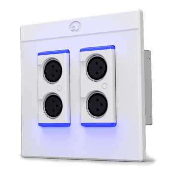 Cajetín DANTE con 4x Entradas Micro XLR. Alimentación por PoE. Formato Americano con caja doble. Color blanco.