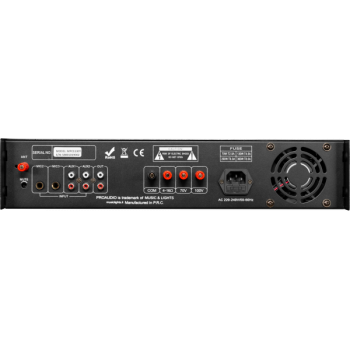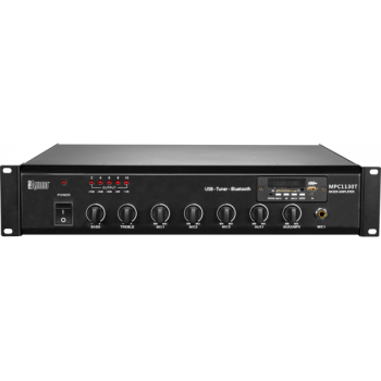 Mezclador-amplificador con sintonizador de FM, Bluetooth y reproductor de tarjetas MP3 / USB / SD diseñado para mezclar y transmitir anuncios de voz y música en sistemas de megafonía.