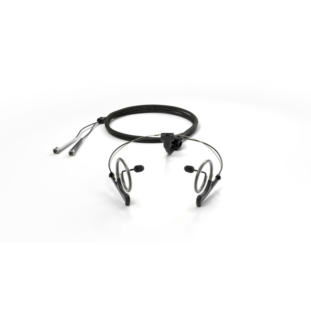 Micrófono Binaural compuesto por un par stéreo de 2 lavaliers 4060, montados en diadema flexible para colocar en las orejas. 134dB SPL max. Peso de 13g. Color negro. Conector Microlock.