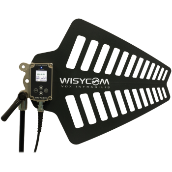 Antena direccional UHF. Banda 410-1300Mhz. Polarización vertical, cobertura horizontal de 120º y vertical de 90 grados. Gain de 7dBi. Booster integrado con ganancia máxima de 27dB. Display TFT para indicación funciones de ganancia, selección de filtros en el propio booster y pulsadores para su ajuste en pasos de 1dB, led indicador de estado y pulsador menú. Filtros ajustables de banda ancha entre 410-730Mhz(40Mhz). Filtros seleccionables HP: 470/550/510 Mhz + LP: 617/662/698 Mhz. Filtros fijos 940÷960Mhz. Cuando el gain del booster está desactivado, la antena se olvida de los filtros aplicados y trabaja en su totalidad de ancho de banda. Control remoto para ajuste de filtros, y ganancia con conexión de datos por el propio cable de antena de RF, este sistema de control remoto solo esta disponible para los siguientes modelos de WisyCom: MAT244, MAT288, SPL2208, SPL2216. Alimentación de 12Vdc (110mA) mediante el propio cable de RF. Impedancia de 50 Ohm. Conector BNC hembra. Perforaciones para evitar el efecto bandera. Montaje rosca hembra 5/8" o 3/8" con adaptador. Juntas impermeables, muy buena resistencia para su utilización en exteriores. Peso 550g. CONSULTAR para bandas de frecuencia diferentes.