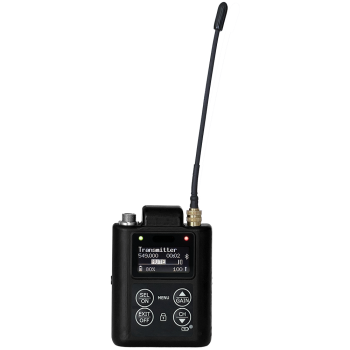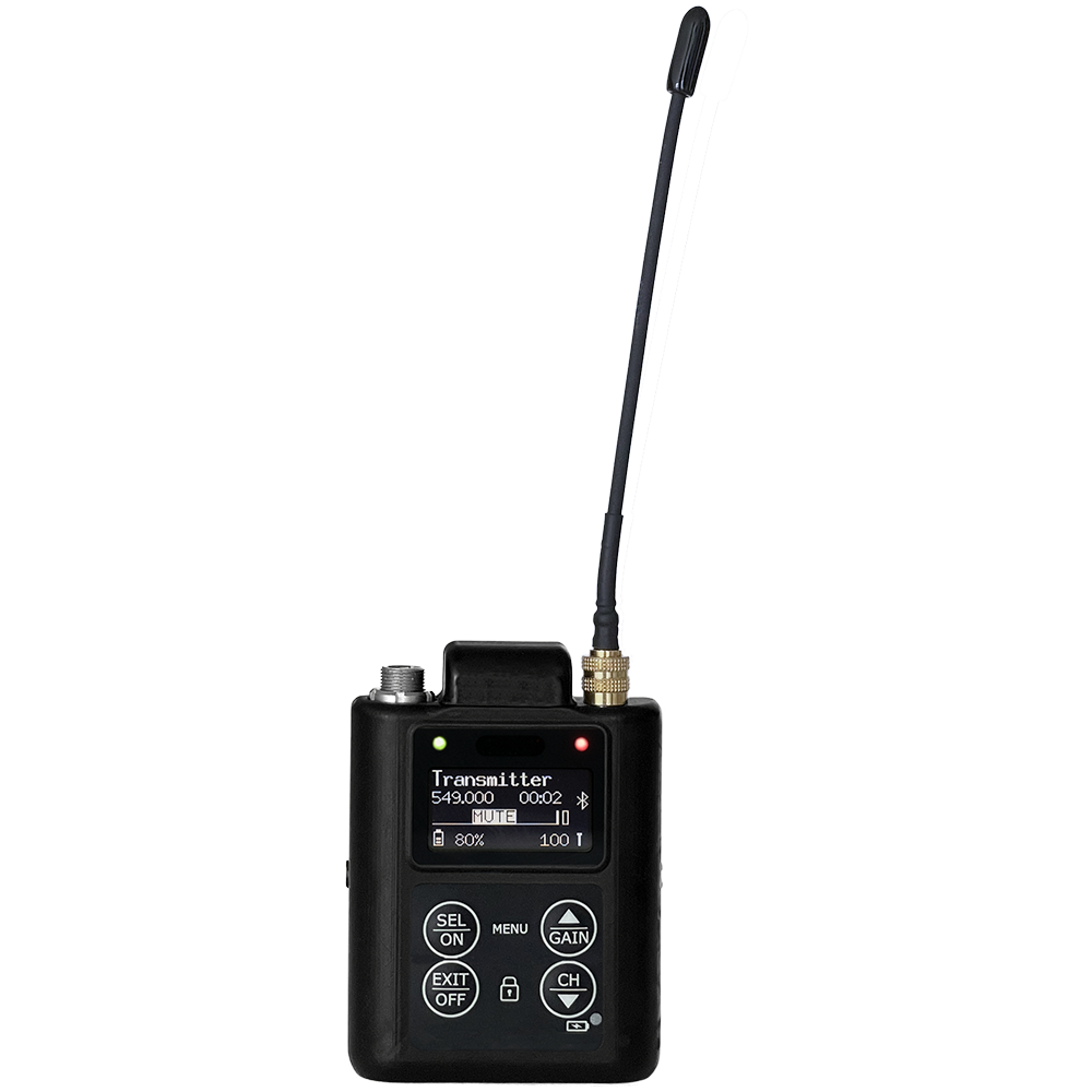 Transmisor de petaca miniatura multibanda. De 470-832MHz. Conector de entrada Microlock. Doble amplificador de RF & cancelador de phase para una casi inexistente intermodulacion (Linear). Seleccion mediante menú Wideband o Narrowband. Incorpora el nuevo filtro ultrasonico para eliminar las interferencias de camaras de TV, y otros dispositivos. Gran display Oled de alto brillo de 128x64 pixels . Compander ENS. Salida de potencia conmutable entre 10/L10/20/L20/50/100mW. Con las opciones L10 y L20 activaremos la tecnología Linear, con la cual, la petaca será capaz de colocar frecuencias libres de intermodulación espaciadas de manera idéntica en 400KHz(en Wideband) o en 200KHz(en Narrowband). Hay que tener en cuenta que el consumo de batería con la tecnología Linear es comparable a estar trabajando a 100mW. 3 x Led RGB para indicaciones de audio, RF, estatus de bateria, e indicación carga de bateria. Interface Bluetooth 5.2 de largo alcance par usos profesionales. Mediante la aplicación Bluetooth tenemos el control total del transmisor y podemos hacer cambios en tiempo real, estará diponible para IOS y Android, esta aplicación se podrá utilizar tanto con dispositivos móbiles como también en tablets. Conector magnetico de 5 pins para alimentacion, USB, y LTC. El cable con conector magnetico para cargar la bateria, alimentacion, USB, y LTC es e modelo CAUSBM5P de 5pines es imprescindible para realizar las funciones anteriores. Tarjeta de memoria interna micro-SD de 64 GB. Esto nos permite la grabación en tiempo real. Este modelo envia señales codificadas de, tone-squelch, estado de las baterias, funcion PTT, compander y modulacion. Decodificador Time Code. Pulsadores de acceso rápido para cambio de canal, ganancia, On-Off, bloqueo, selección y mute. Alimentacion mediante bateria modelo LBP61 Accesorios opcionales(CONSULTAR). Medida de 66,8mm x 47mm x 17mm sin clip de sujeción. Peso de 72g sin baterias. 94g con bateria. Color Negro.