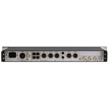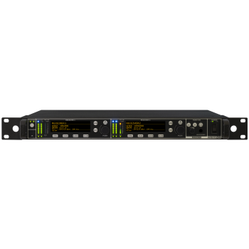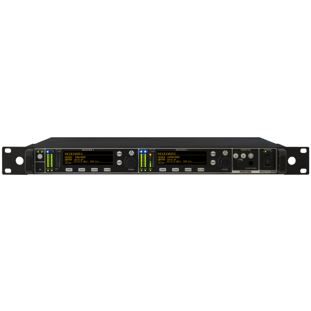 Receptor dual True Diversity con tarjeta de RF por Fibra instalada. 1U Rack. Filtro de banda seleccionable: VHF: 170-230MHz, UHF: 470-800Mhz y 960-1160 Mhz. Proceso DSP totalmente completo. PTT habilitado con salidas independientes para cada canal (opcional). Splitter de antena interno activo para un máximo de cuatro unidades MRK980. WisyCom companders: ENR,ENC,JNR,JNC,NONE-d50,NONE-d75. Multicompanding para compatibilidad con SEN (HyDin+®), SEN-do (HyDin®), EVO (HDX®),SR (R-Series®). Extremadamente inmune a la intermodulación. Displays Oled independientes para cada uno de los canales e indicaciones de todas las funciones incluida nivel de baterías de los transmisores. Teclas de acceso directo en panel frontal para Sync, Scan, Audio, Ch/Gr. Programación de transmisores mediante IR en la parte delantera. Salida de auriculares independiente para cada canal en parte frontal con control de volumen. Switch interno con dos puertos Ethernet para crear red de trabajo mediante Software para pc WisyCom Manager y dos puertos para protocolo Dante, estos puertos son configurablestambién mediante el software WisyCom Manager. Configuración/monitor, modo analizador de espectro etc. Calculador de frecuencias libres de intermodulación, setups etc. Salidas balanceadas conmutables mic/line, AES/EBU & Dante. Preparado para futuras opciones GPI/GPO. Conexión World Clock por BNC in/out. Opción alimentación externa entre 10V-28Vdc, esta opción es una referencia de producto diferente con su precio correspondiente (MRK980-DC-EXO-UHF). NO INCLUYE CABLE DE ALIMENTACIÓN Schuko a IEC. Peso de 4Kg.