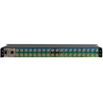 Splitter y combinador Activo, para dieciséis sistemas diversity, 1U de rack. Banda de 170 a 1260Mhz. Alta linealidad de RF para utilizar con MTP40S Linear. Dos entradas independientes de antenas (2x2) seleccionables desde el panel frontal. Dieciséis salidas (16x2). Integra el protocolo de antena remota de WisyCom utilizando el cable coaxial para monitorear y controlar remotamente los amplificadores (BFA) o (LFA), gracias al interface Ethernet todas estas funciones las podemos gestionar vía PC con el software WisyComManager. Desde el panel frontal también podemos manualmente activar o desactivar los boosters de antena que nos interese en cada una de las entradas de manera independiente. Pulsadores en panel frontal para control de funciones. Conexión de salida (Cascada) para enlazar con otro dispositivo. Alimentador externo, para conectar este alimentador el SPL2208 utiliza un conector tipo XLR de cuatro pins, con lo cual dos de ellos son los principales y los otros dos son para alimentación redundante. Acepta alimentación entre 10-28Vdc. Entradas y Salidas con conectores BNC hembra, así también como la conexión en cascada. 50 Ohms de impedancia tanto de entrada como de salida. Fuente de limitación externa (AL1265XF) incluida. Peso de 3Kg. NO INCLUYE CABLE DE ALIMENTACIÓN Shuko a IEC.