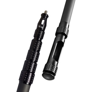 Pértiga de grafitode 5 tramos. Cable trenzado interno. Incluye daptador para transmisores Plug ON. 1,22 a 4,4m de extensión. 1.18Kg.