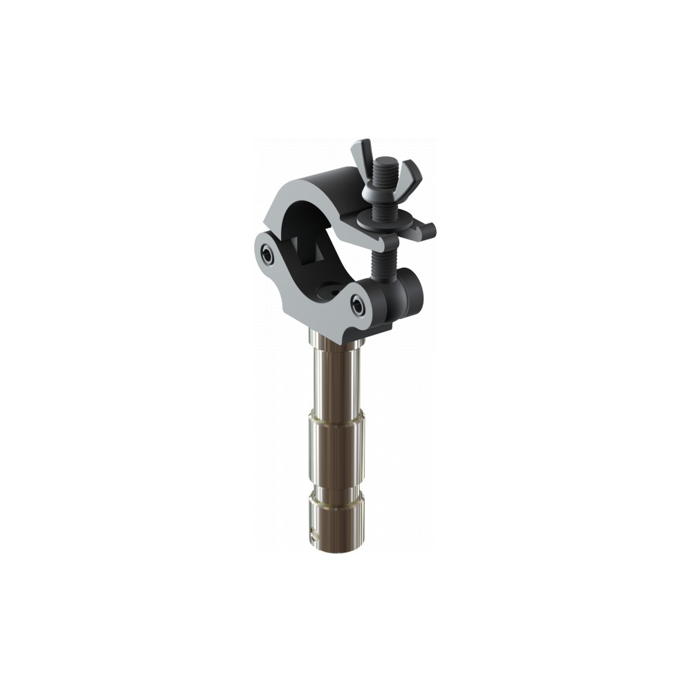 Slim aluminium clamp with spigot, 200 kg loading, 48-51 mm tubes, M10 bolt