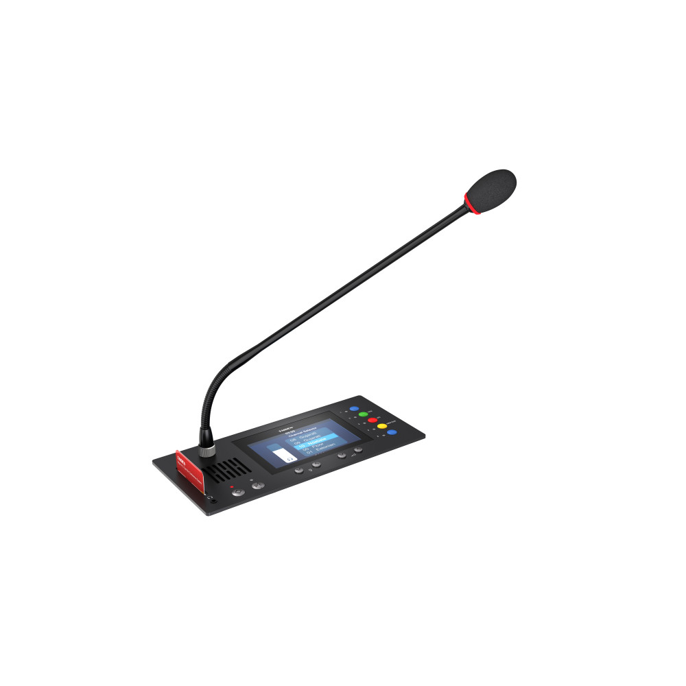 Puesto de PRESIDENTE encastrar para serie 4800 (VOZ, VOTACIÓN 5 botones, TRADUCCIÓN 64ch). No incluye micrófono (recomendado MS41EGA1B). Altavoz, lector tarjeta contactless IC. Pantalla táctil 4,3. Color gris oscuro.