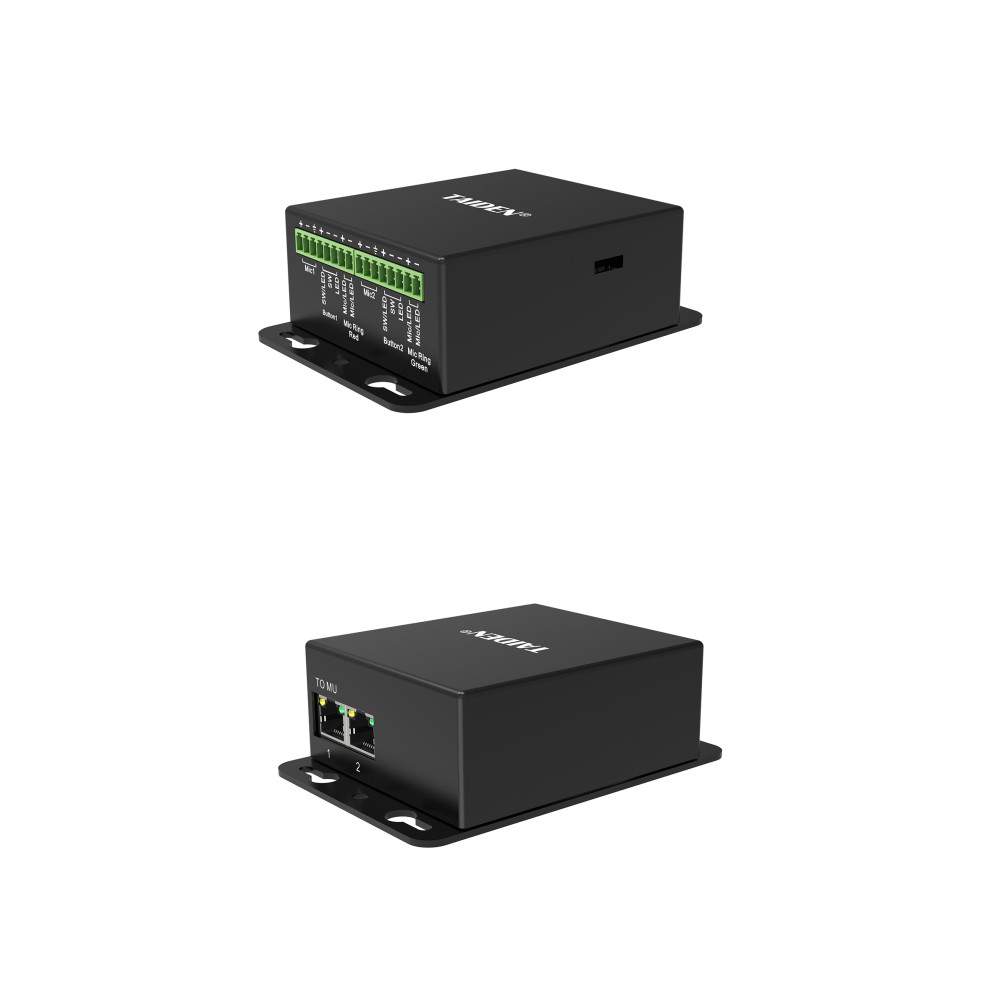 Cajetín para conexión con Euroblock de 2x micrófonos con phantom, indicador LED y pulsadores. 2x RJ45 para conexiíon a sistema 4800.