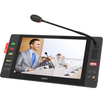 Terminal Multimedia Paperless (PRESIDENTE, 14 1920×1080 LCD, 128x36 OLED, speech, voting, 64 CHs, HD video display, HDMI input, contactless IC-Card, video source selection, support PoE, braille, color negro), micrófono no incluido.