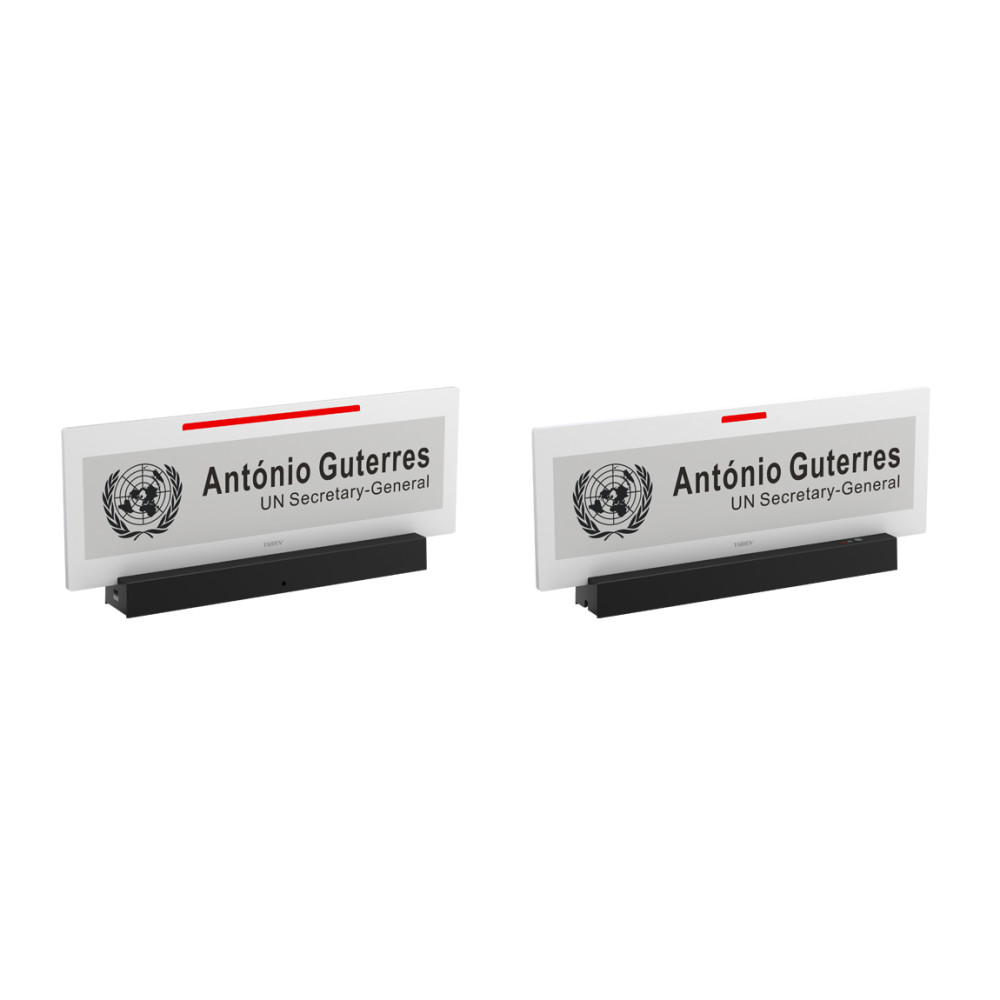 Panel tinta electronica E-ink para nombre. Sobremesa, doble pantalla, 14,74, indicador de estado de micrófono, conector USB a terminal HCS-86**. Conector RJ45 soporta PoE. Requiere HCS-8531/4531 o HCS-8532/4532, color blanco.