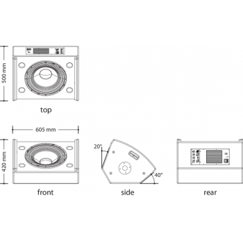 Monitor de escenario auto-amplificado, 2 vías. con módulo de amplificación Clase D+AB 350W + 70W. Respuesta en frecuencia: 50-18.000Hz (±3dB). LF 1 woofer de 15" con bobina de 3"; HF motor de compresión 1" con bobina de 1,7". Max SPL 128dB. Cobertura 90º x 90º, Frecuencia Crossover 1.700 Hz. Conexiones de entrada XLR-3. Peso 29 kg. Dimensiones (WxHxD) 605 × 420 × 500 mm. Acabado en color negro.