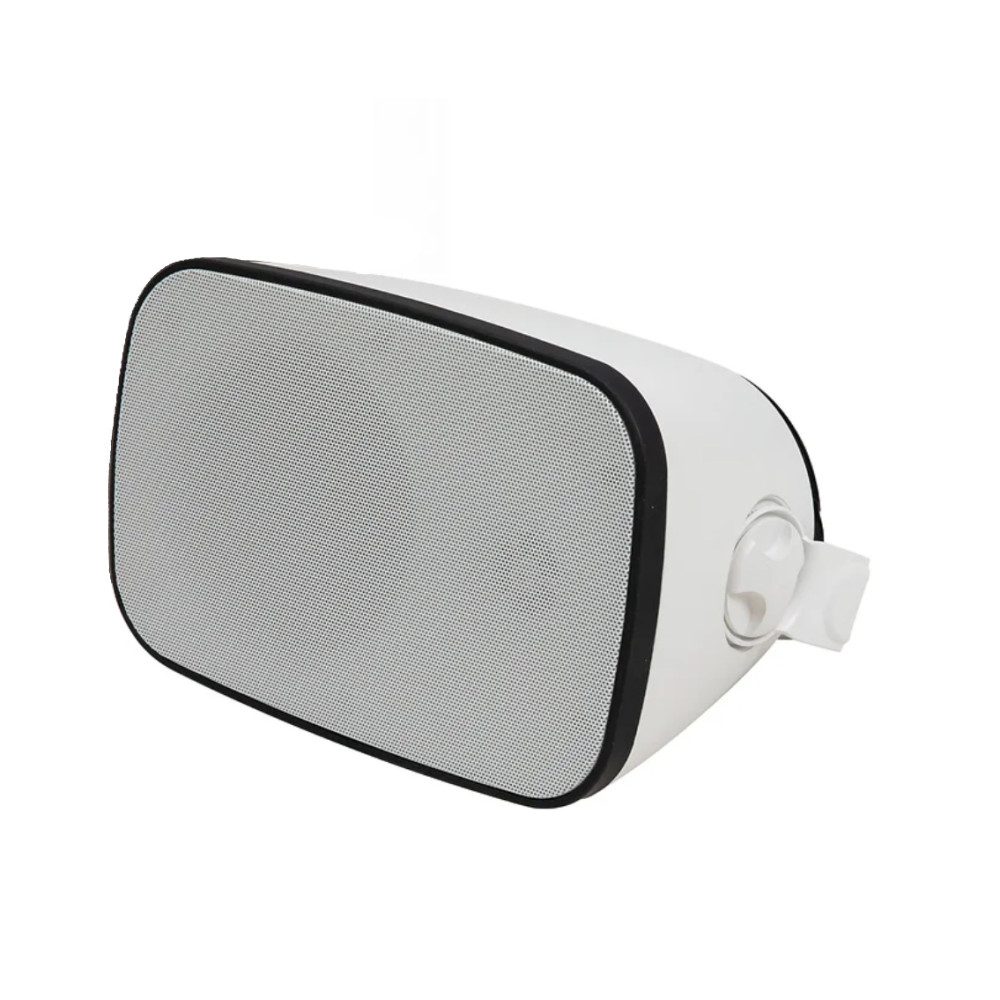 Recinto acústico para exterior IP65 Dante Autoamplificado. Altavoz 5" + tweeter 1". Color blanco. Soporte incluido.