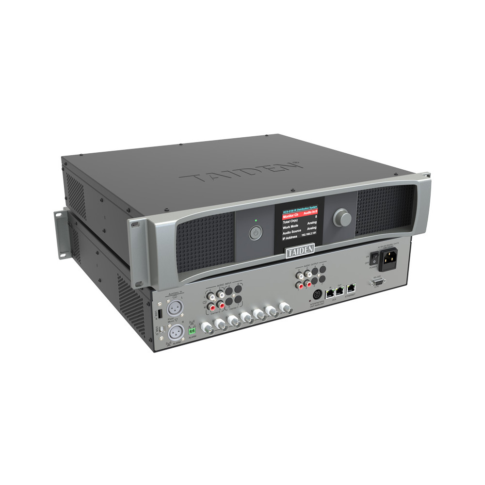 Unidad Central Transmisora Digital de 4 canales (3 idiomas + floor) para sistema de traducción simultánea por Infrarojos. Compatible con puesto de intérprete HCS-4385U/50 y también con HCS-8685 (utilizando conversor HCS-4853T). 2U rack.