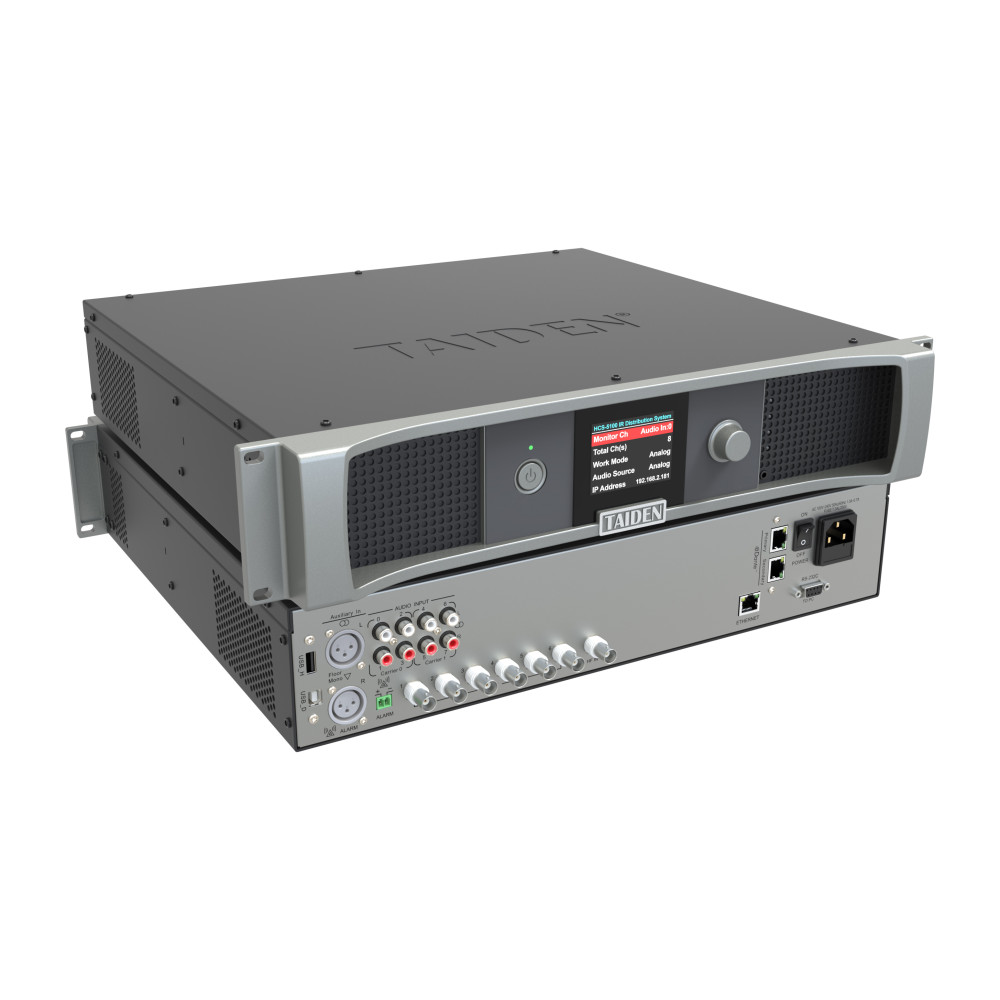 Unidad Central Transmisora Digital de 8 canales (7 idiomas + floor) para sistema de traducción simultánea por Infrarojos. Interfaz DANTE. 2U rack.