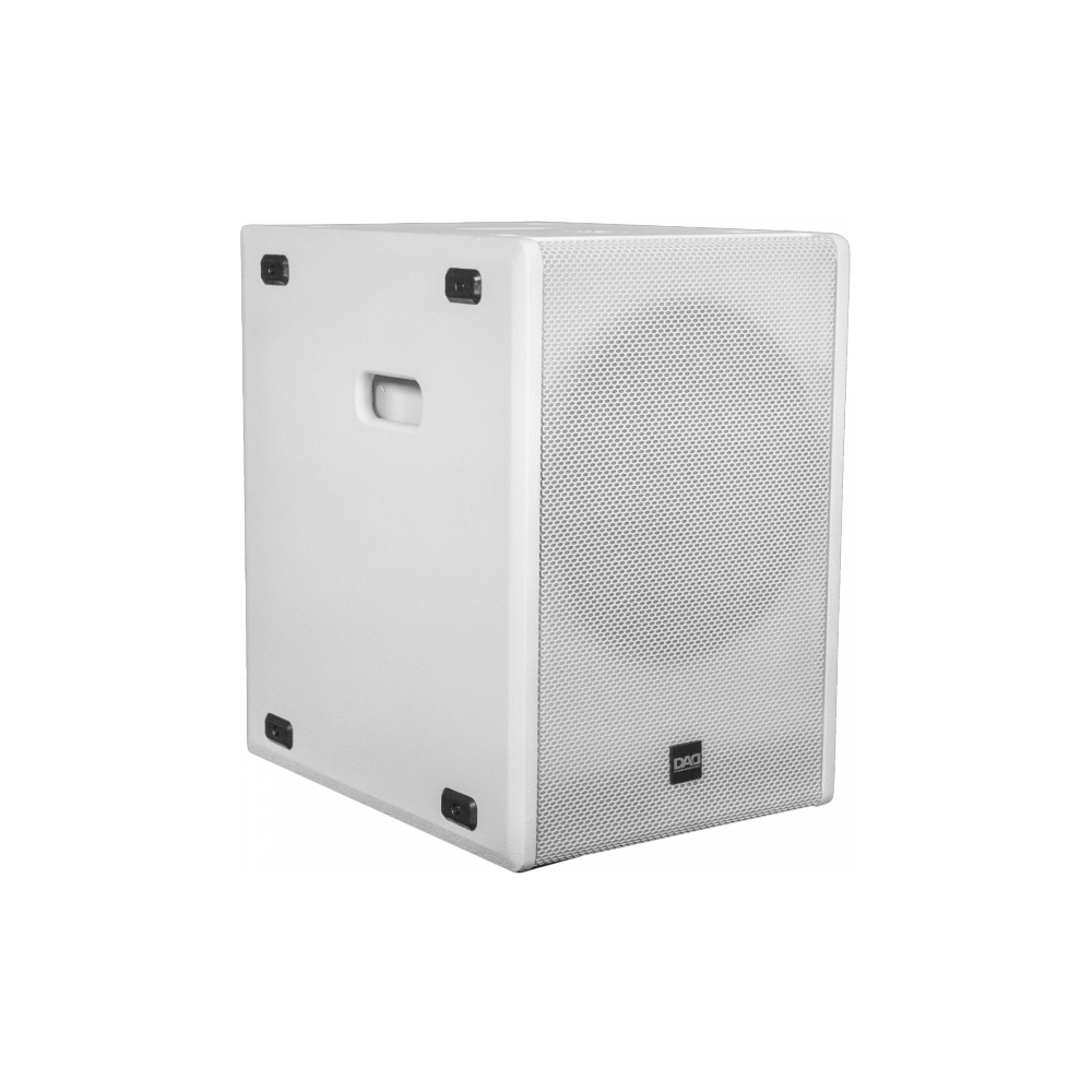 Subwoofer pasivo de 12", Bass reflex, 400 W RMS, 8 Ohms, 40-200 Hz (+-3 dB), woofer de 12" con bobina de 3", 125 dBs, In/out de 4 polos, jack 6,35 mm in/out, Peso 21,9 Kg, DImensiones 362 x 520 x 470 mm. Acabado en color blanco.