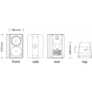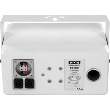 Recinto acústico pasivo de 2 vías 120W AES, 16 Ohm, 114dB SPL. Cobertura 140°x140° (HxV). Respuesta en frecuencia 75 - 18.000 Hz (±3dB), LF 5” woofer / 1.5” v.c., HF 1” driver / 1.5” v.c. Sensibilidad 89dB @1W/1m. Forma trapezoidal 7.5°. Conexiones: 4 pole in/out; terminal clamp, Peso 5.9 kg. Dimensiones (WxHxD) 310x187x208 mm. Acabado en color Blanco.