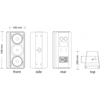 Recinto acústico pasivo de 2 vías 240W AES, 16 Ohm, 116dB SPL. Cobertura 140°x140° (HxV). Respuesta en frecuencia 75 - 18.000 Hz (±3dB), LF 2x 5” woofer / 1.5” v.c., HF 1” driver / 1.5” v.c. Sensibilidad 92dB @1W/1m. Forma trapezoidal 7.5°. Conexiones: 4 pole in/out; terminal clamp, Peso 8.6 kg. Dimensiones (WxHxD) 438x187x208 mm. Acabado en color Blanco.